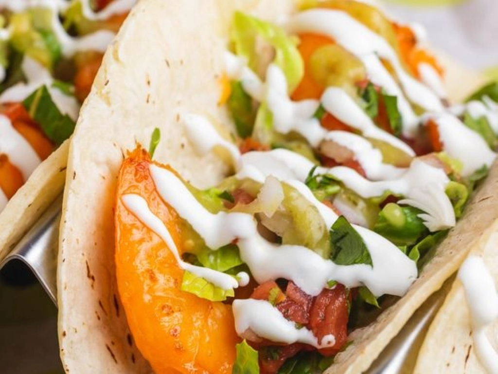 Seasoned & marinated crispy tilapia - three tacos, on corn tortillas with cheese, pico De gallo, tomatillo salsa, crema, cilantro & lime.