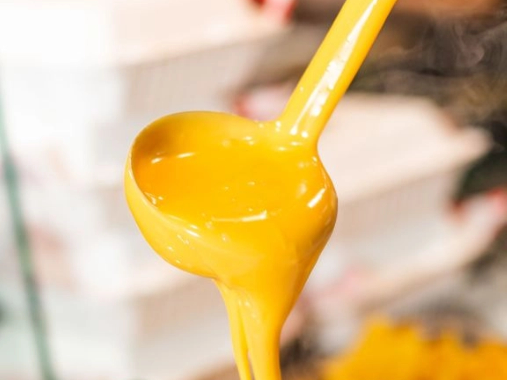 A golden, perfectly fried churro, dusted with cinnamon and sugar, filled with velvety caramel.