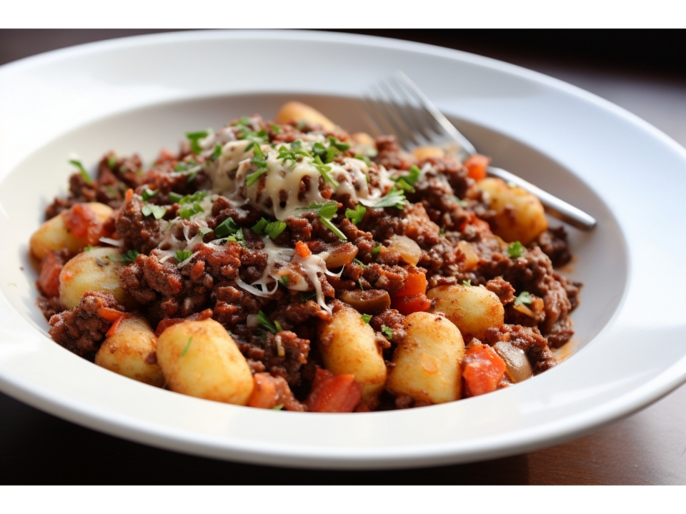 Sautéed with peppers, mushrooms, onions, and potatoes in a red sauce