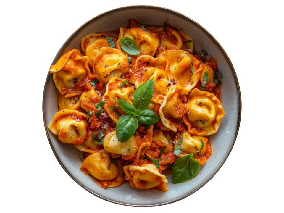 Prosciutto, peas, mushrooms and vodka in tomato sauce