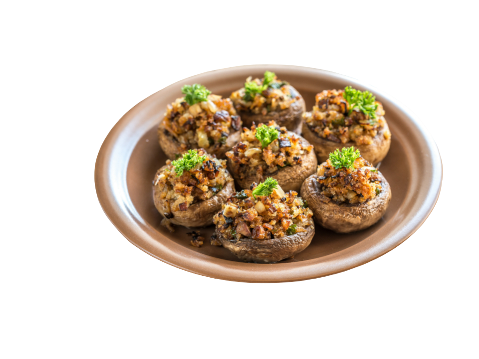 Baked mussels, clams, shrimp, stuffed mushrooms, and eggplant rollatini