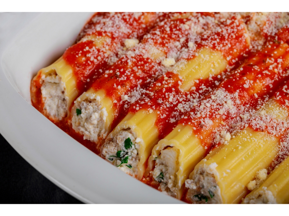 Eggplant filled with spinach and ricotta cheese, topped with marinara and mozzarella. Served with pasta or salad