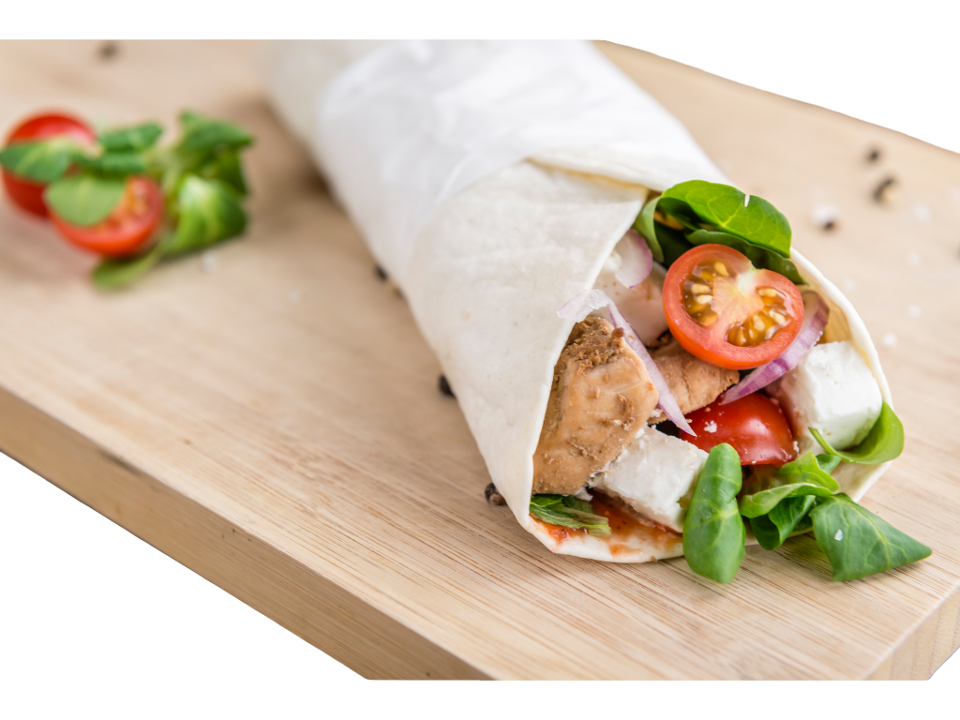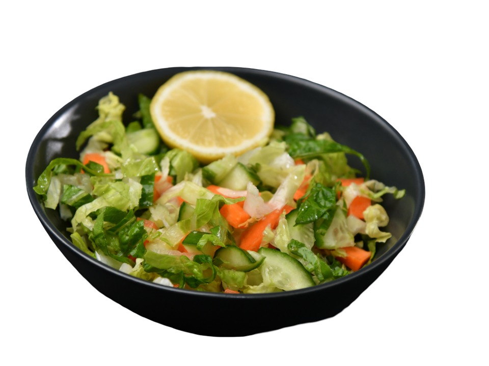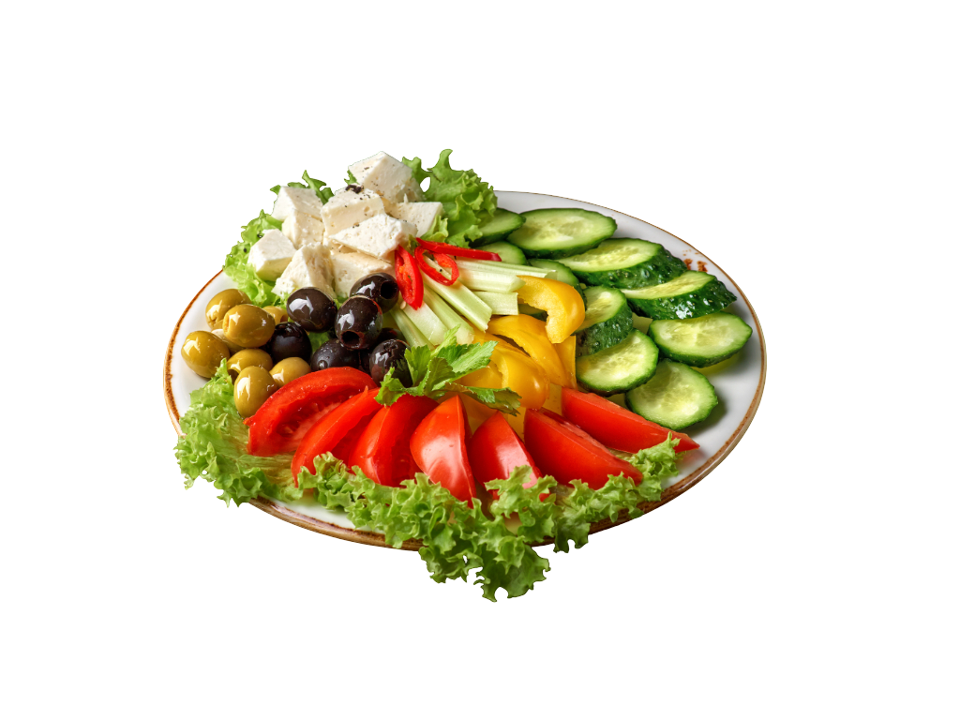 With romaine lettuce, tomato, onion, cucumbers, and feta cheese
