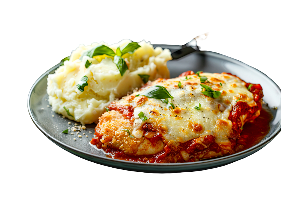 Breaded chicken or veal cutlet sautéed in tomato sauce and topped with mozzarella