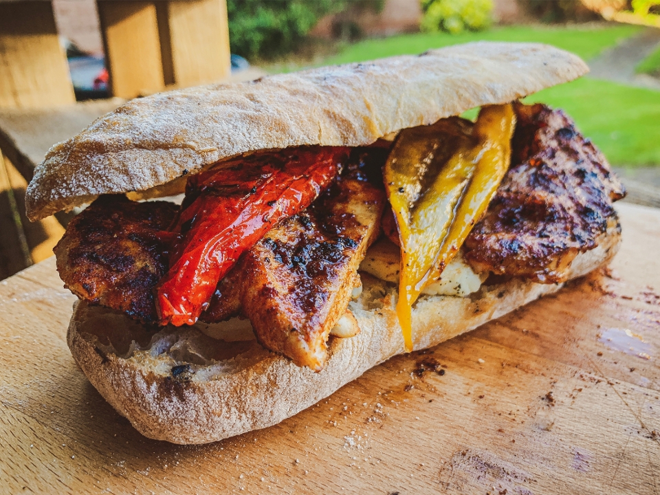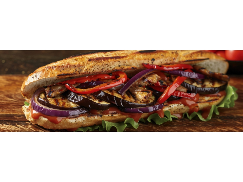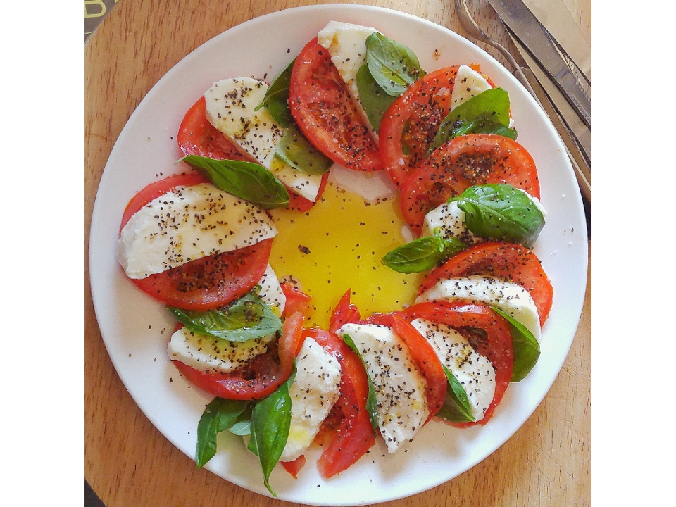With fresh mozzarella & roasted peppers and balsamic vinaigrette