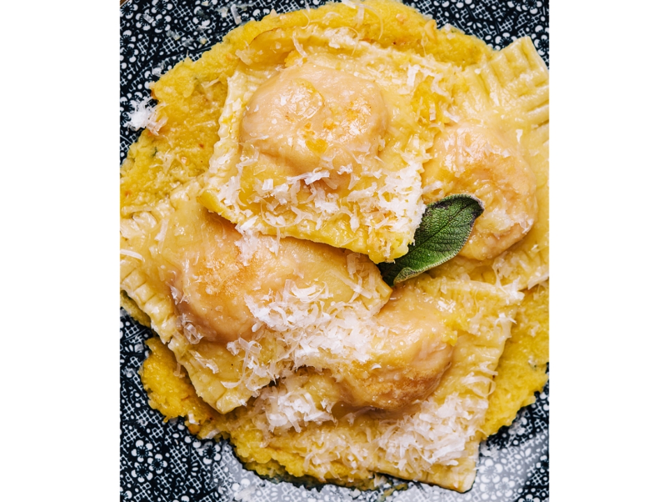 Chicken breast or veal dipped in egg, sautéed with lemon, butter, and white wine